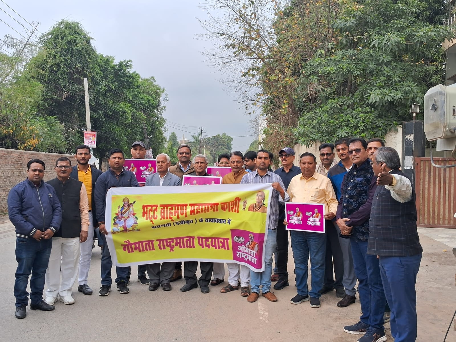 वाराणसी: गौमाता को राष्ट्रमाता घोषित कराने व गोकशी बंद कराने हेतु गौमाता राष्ट्रमाता प्रतिष्ठा आंदोलन के अंतर्गत वृंदावन से दिल्ली तक नंगे पांव पन्द्रह दिवसीय पदयात्रा कर रहे परमाराध्य परमधर्माधीश ज्योतिष्पीठाधीश्वर जगदगुरु शंकराचार्य स्वामिश्री: शंकराचार्य जी महाराज का कठोर संकल्प पूर्ण हो भगवान उनको शक्ति प्रदान करें।इस मंगलकामना को लेकर आज काशी में पहड़िया पर भट्टब्राह्मण महासभा काशी पंजीकृत संस्था के भारी संख्या में उपस्थित सदस्यों द्वारा पैदल यात्रा की गई व गौ गोष्ठी का आयोजन किया गया।