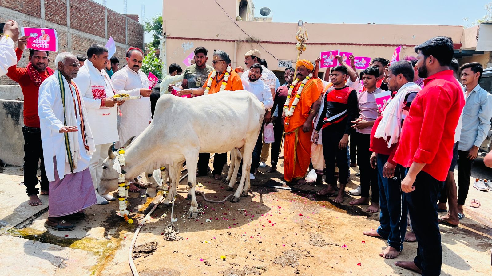 वाराणसी: गौमाता को राष्ट्रमाता घोषित कराने व गोकशी बंद कराने हेतु नंगे पांव वृंदावन से दिल्ली नंगे पांव पदयात्रा कर रहे परमाराध्य परमधर्माधीश ज्योतिष्पीठाधीश्वर जगदगुरु शंकराचार्य स्वामिश्री: अविमुक्तेश्वरानंद: सरस्वती महाराज के समर्थन में यदुवंशी समाज भी उतर गया है।आज रामनगर स्थित परोरवा गांव में भारी संख्या में एकत्र यदुवंशी समाज ने अजित कुमार यादव(बब्बू प्रधान)जिला पंचायत सदस्य के नेतृत्व में व पूज्यपाद शंकराचार्य जी महाराज के मीडिया प्रभारी संजय पाण्डेय के मार्गदर्शन में सविधि गौपूजन कर व पदयात्रा निकाल कर शंकराचार्य जी महाराज को अपना समर्थन प्रदान किया।गौपूजन के दौरान गौमाता के मूत्र विसर्जन करने पर उसे गौभक्तों ने हाथ मे लेकर अपने ऊपर छिड़काव कर गौमाता के प्रति अपने अप्रतिम भक्ति को प्रदर्शित किया।
