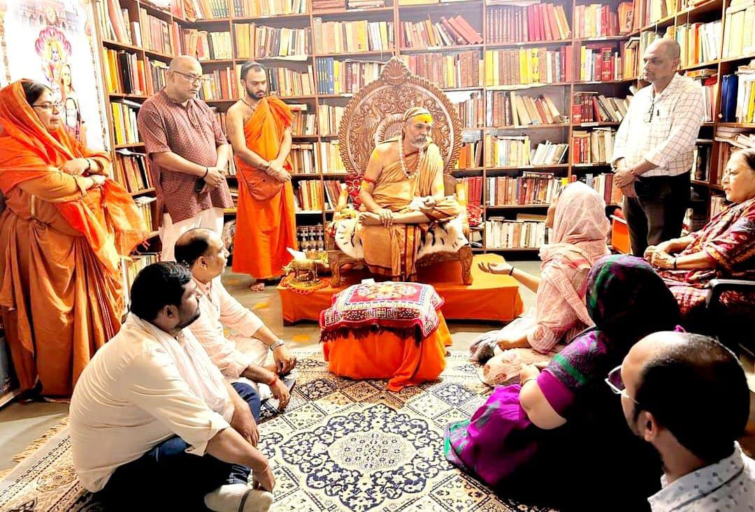 Varanasi। आज कांग्रेस महानगर अध्यक्ष राघवेंद्र चौबे संग विद्यामठ पहुचकर प्रदेश अध्यक्ष अजय राय की धर्मपत्नी रीना राय अपने पुत्री संग आशीर्वाद प्राप्त की। प्रदेश अध्यक्ष अजय राय की धर्मपत्नी रीना राय ने कहा की पूज्यनीय शंकराचार्य स्वामी अविमुक्तेश्वरानंद महाराज की के चरणों में हम शीश नवाते है महाराज हमेशा देश समाज धर्म अध्यात्म और परमार्थ के लिए समर्पित रहते है महाराज जी अपने अध्यात्म के साथ देश और समाज के कल्याण में महत्वपूर्ण भूमिका निभाते है स्वामी जी का आशीर्वाद हम सब पर बना रहे।