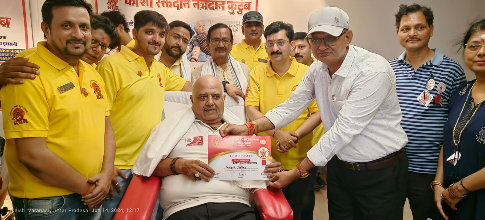 वाराणसी: श्री काशी विश्वनाथ मंदिर कॉरिडोर में विश्व रक्तदाता दिवस के उपलक्ष्य में रक्तदान शिविर का अयोजन ट्रायल के रुप में किया गया विगत वर्षो से काशी रक्तदान नेत्रदान कुटुम्ब काशी विश्वनाथ मंदिर परिसर में रक्तदान शिविर नियमित रुप से लगाने के लिए प्रयासरत था जिसके लिए शासनादेश से लेकर काशी विश्वनाथ मंदिर न्यास एवं मुख्य कार्यपालक अधिकारी , कमिश्निर साहब सभी से लगातार वार्ता करता रहा एवं बाबा काशी विश्वनाथ जी की कृपा एवं सभी अधिकारियों के सकारात्मक सोच से यह सुअवसर दिनांक १४ जून विश्व रक्तदाता दिवस के अवसर पर आरंभ हुआ निश्चित रूप से नियमित रूप से जब यह रक्तदान शिविर लगने लगेगा तो महादेव के इस नवीन रक्तकोष से पूरे पूर्वांचल के थैलीसीमिया मरीज, कैंसर के मरीज , प्लास्टिक एनीमिया के मरीजों को नव जीवन प्रदान करने में महादेव बाबा काशी विश्वनाथ की साक्षात कृपा होगी। मंडलीय चिकित्सालय कबीर चौरा ब्लड बैंक के सहयोग से यह रक्तदान शिविर आयोजित किया गया काशी रक्तदान नेत्रदान के संरक्षक प्रदीप असरानी ने अपना 200 वन रक्तदान किया और उपस्थित समूह से आवाहन किया की विधि समय-समय पर अपने रक्त का दान करते रहें जिससे वह स्वयं ब्लड प्रेशर हिसार एवं मानसिक डिप्रेशन से बचे रहेंगे और उनके दान से तीन जिंदगियां की नवजीवन प्रदान होगा शिविर में अपर आयुक्त कार्यपालक शुक्ला ने रक्तदानियों को सर्टिफिकेट प्रदान किया एवं 90 लोगों ने सहभागिता की जिसमें 60 लोगों का रक्तदान संभव हो पाया इस शिविर में रक्तदान करने वालों को काशी विश्वनाथ के लोगो वाला सर्टिफिकेट के साथ वीआईपी दर्शन, प्रसाद का लाभ भी मिला। केआरके के अध्यक्ष नीरज पारिख एवं सचिव राजेश गुप्ता ने बताया की हम सभी लोग महादेव को धन, सोना, चांदी, प्रसाद, माला फूल यथा संभव अर्पित कर उनको प्रसन्न करते है। अब हम भक्त जनों को उनके धाम में साक्षात अपने रक्त का अर्पण कर ३ जिंदगियों को जीवन दान देने में महादेव के परिसर में परम् सौभाग्यशाली होने का गौरव प्राप्त होगा जिससे रक्तदान करने की प्रवृत्ति एवं जागृति भी बढ़ेगी। कृष्मोहन मौर्य , अनुराग लालवानी, अभिनव टकसाली ने सपरिवार अपने बच्चो सहित बाबा के दरबार में रक्तदान किया।