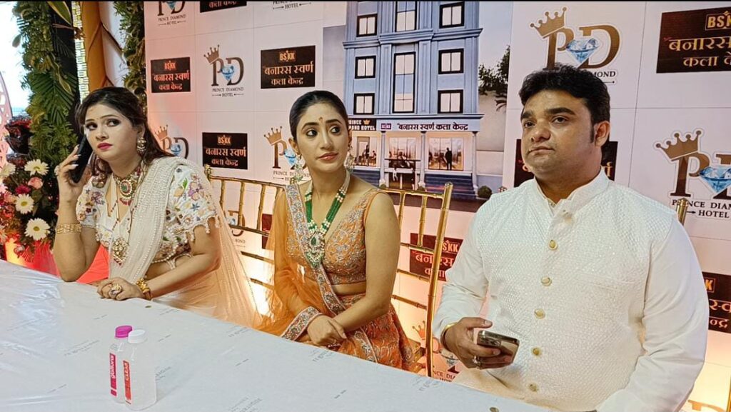 आज श्री बनारस स्वर्ण कला केंद्र एवं प्रिंस डायमंड होटल के उद्घाटन पर स्टार प्लस के लोकप्रिय सीरियल ये रिश्ता क्या कहलाता है की टीवी अभिनेत्री शिवांगी जोशी वाराणसी पहुंची और उन्होंने उद्घाटन के मौके पर प्रिंस कुमार जायसवाल और पूजा जायसवाल को इस नये होटल के लिए उन्हें शुभकामना दी।