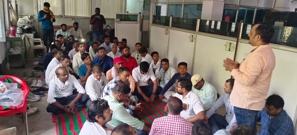 कार्यस्थल से नहीं हटाने से छुब्ध होकर सिगरा कार्यालय पर धरना प्रदर्शन