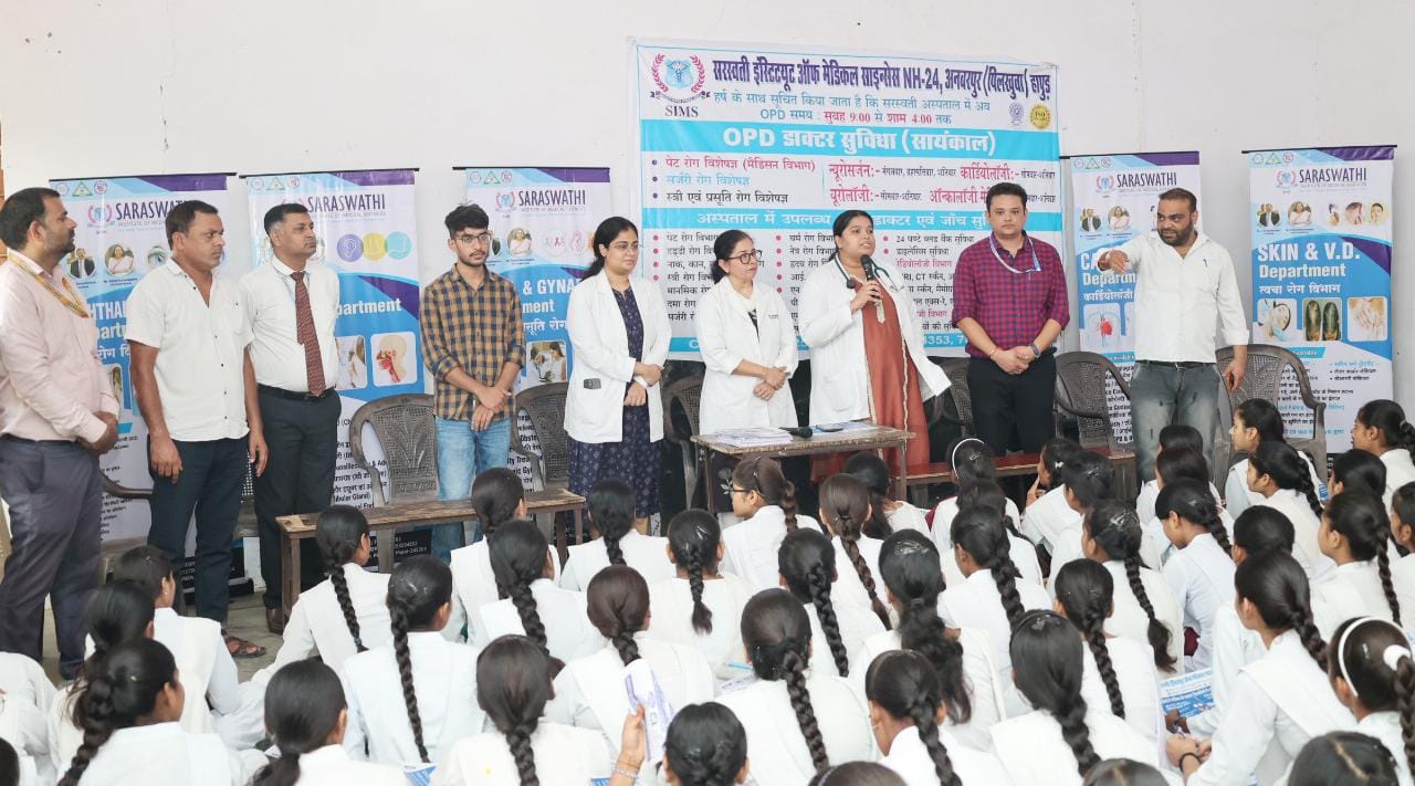 हापुड़ (मनीष कुमार) सरस्वती मेडिकल कॉलेज द्वारा सर्वेध्य विद्यालय, पिलखुवा में किशोरावस्था के छात्रों के लिए एनीमिया जागरूकता कैंप का आयोजन किया गया। इस अवसर पर छात्रों को एनीमिया के लक्षणों, पहचान और बचाव के उपायों के बारे में विस्तार से जानकारी दी गई कैंप के दौरान डॉ. भावना कोहली (वरिष्ठ प्राध्यापक, बाल रोग विभाग) ने बताया कि एनीमिया आज किशोरावस्था की एक गंभीर समस्या बनती जा रही है। समय रहते यदि इसके लक्षण पहचान लिए जाएँ तो बचाव बेहद आसान हो जाता है। उन्होंने समझाया कि एनीमिया के सामान्य लक्षणों में भूख न लगना या जल्दी थक जाना सांस फूलना आंखों की पलक के अंदर का हिस्सा सफेद या पीला पड़ना नाखूनों और जीभ का सफेद/पीला दिखना पैरों में सूजन आना शामिल हैं इसके साथ ही उन्होंने छात्रों को एनीमिया से बचाव के तीन सरल उपाय भी बताए रोजाना अपने खाने में आयरन युक्त खाद्य पदार्थ शामिल करें जैसे हरी पत्तेदार सब्जियां, अनाज, गुड़, दालें और फल हर सप्ताह आयरन की एक गोली जरूर लें, जिससे शरीर में आयरन की कमी न हो हर 6 माह के अंतराल पर पेट के कीड़ों की दवा लें, ताकि शरीर पोषक तत्वों को सही से अवशोषित कर सके अस्पताल प्रबंधक ने अंत में बच्चों से सीधे संवाद करते हुए उनसे पोषण संबंधी सवाल पूछे और सही जानकारी दी। वहीं, डॉ. पल्लवी (सहायक प्राध्यापक) ने सरस्वती अस्पताल की अन्य स्वास्थ्य सेवाओं एवं सभी आधुनिक सुविधाओं के बारे में विस्तार से जानकारी प्रदान की निदेशक रघुवर दत्त, महाप्रबंधक एन. वरदराजन और अस्पताल प्रशासक – डॉ. वाई. सी. गुप्ता ने भी इस अवसर पर अपने संदेश दिए। उन्होंने कहा कि “सामाजिक स्वास्थ्य और वेलनेस को बढ़ावा देना ही सरस्वती अस्पताल और सरस्वती इंस्टीट्यूट ऑफ मेडिकल साइंसेस (SIMS) की प्रतिबद्धता है। इसी संकल्प के तहत संस्थान लगातार समाज में जागरूकता और स्वास्थ्य सेवाओं के लिए सक्रिय भूमिका निभा रहा है। इसके साथ ही चेयरमैन डॉ. जे. रामचंद्रन एवं वाइस चेयरपर्सन रम्या रामचंद्रन ने भी इस पहल की सराहना की और पूरे SIMS टीम को सफलतापूर्वक जागरूकता कैंप आयोजित करने के लिए बधाई दी सरस्वती इंस्टीट्यूट ऑफ मेडिकल साइंसेस (SIMS) निरंतर ऐसे स्वास्थ्य शिविरों के माध्यम से समाज में किशोरों और युवाओं को स्वस्थ जीवनशैली अपनाने हेतु जागरूक कर रहा है।