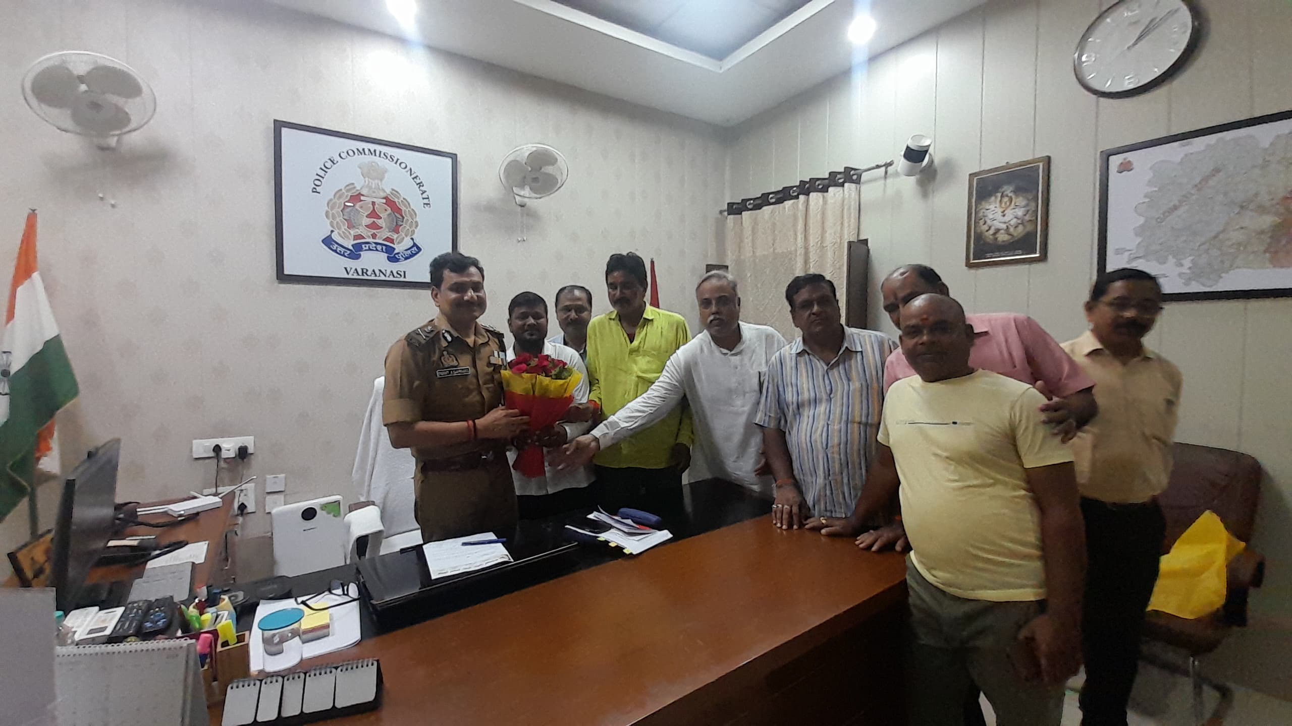 वाराणसी सराफा व्यापार मंडल का एक प्रतिनिधिमंडल अपने व्यापारियों के साथ वाराणसी पुलिस कमिश्नर मोहित अग्रवाल से मिलकर सर्राफा कारोबारी के साथ लगातार हो रही लूट हत्या की घटना को देखते हुए पांच सूत्री मांग