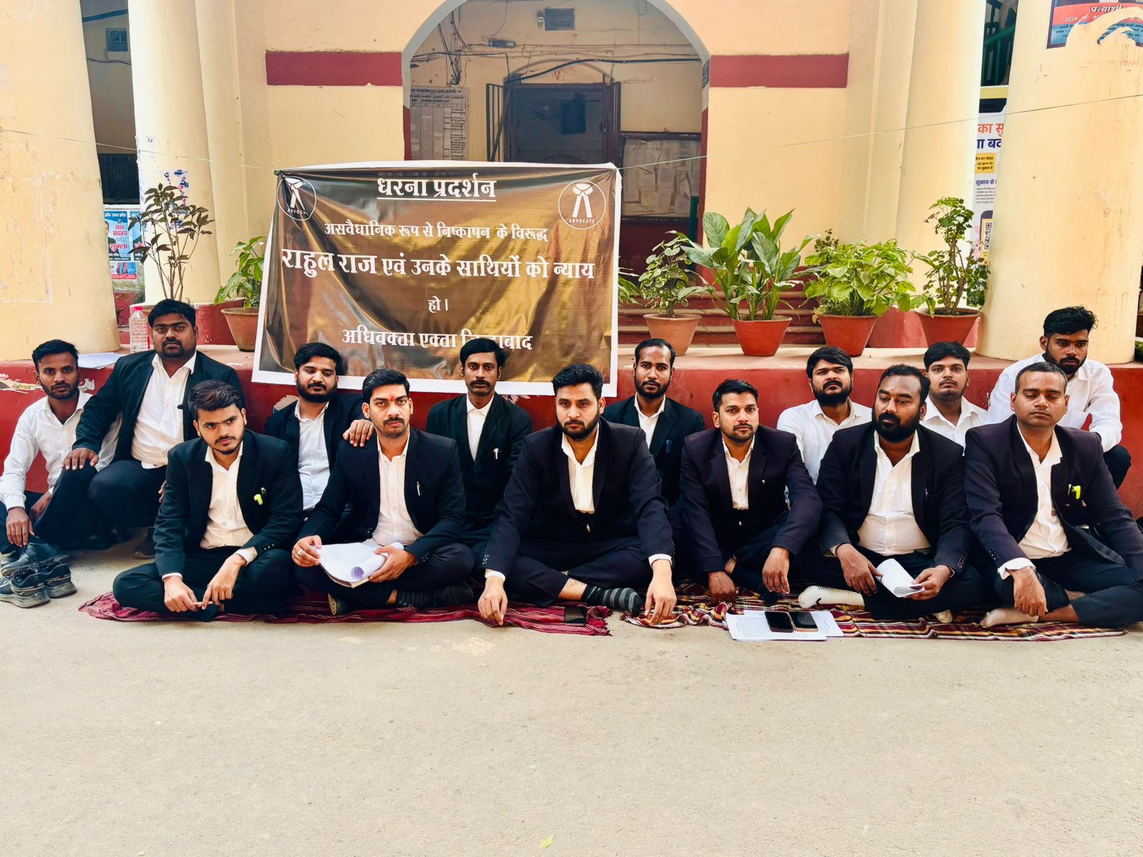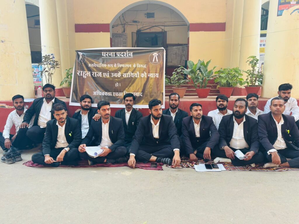 कीजिए,तभी अधिवक्ता मनोज गुप्ता हमसे बहुत बदतमीजी से बात करता है गाली गलौज करना शुरू कर देता है उसके पश्चात उनकी पुरानी कोई से रंजिश थी कोई 50 से 52 वर्ष का अधिवक्ता उनको पीछे से आकर मार कर चला जाता है जिनको मैं जानता और पहचानता भी नहीं हूं उसके पश्चात उनके सजाति के सेंट्रल बार संगठन के महामंत्री जो की जाती वादी रवैया अपनाते हुए एक तरफा कार्रवाई करते है बिना जांच पड़ताल के आनन फानन में एक सभा बुलाते हैं और असंवैधानिक रुप से बिना किसी को सूचना दिए तत्काल आम सभा बुलाते हैं वहीं राहुल राज ने कहा कि आम सभा बुलाने के लिए दिनांक समय और तारीख और समिति बनाई जाती है लेकिन ऐसा नहीं किया गया हमारे पक्ष को नहीं सुना गया हमारे बात को भी रखने का अवसर नहीं दिया गया आनन फानन में तत्काल महामंत्री ने हम लोगों को सजा सुनाते हुए सेंट्रल बार से 3 वर्ष के लिए निष्कासन कर देते हैं जिसके खिलाफ लगातार दूसरे दिन हम लोग धरने प्रदर्शन पर बैठे हुए