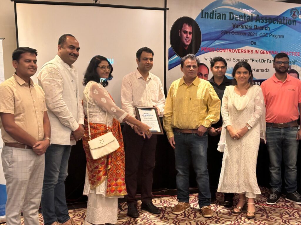 सेंसोडाइन और इंडियन डेंटल एसोसिएशन वर्ल्ड डेंटिस्ट डे के अवसर पर वाराणसी में डेंटिस्ट को सम्मानित कर रहे हैं