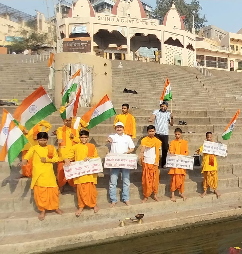 राष्ट्रीय स्वच्छ गंगा मिशन द्वारा आयोजित गंगा स्वच्छता पखवाड़ा के तहत शनिवार को नमामि गंगे के स्वयंसेवकों के साथ महर्षि योगी विद्याश्रम के वेदपाठी बटुकों ने सिंधिया घाट पर गंगा तट की स्वच्छता करके ‘स्वच्छ तीर्थ अभियान’ का शुभारंभ किया। कूड़ा-करकट उठाकर डस्टबिन में डाला और ”हमारी काशी,स्वच्छ काशी”’ का संदेश दिया। राष्ट्रध्वज के साथ संकल्प लेकर वैदिक बटुकों ने स्वच्छता का शंखनाद किया। नमामि गंगे काशी क्षेत्र के संयोजक राजेश शुक्ला ने कहा कि स्वच्छता पखवाड़ा का उद्देश्य हर गांव-नगर, धार्मिक, पर्यटन व तीर्थ स्थल, सार्वजनिक स्थलों पर सफाई रहे । स्वच्छ तीर्थ अभियान से जनमानस सहित विद्यार्थियों, सामाजिक कार्यकर्ताओं को जोड़ा जा रहा है। कहा कि हर देव मंदिर, चिकित्सालय, विद्यालय, सड़क, गली, सार्वजनिक स्थलों की साफ-सफाई हो। सिंगल यूज प्लास्टिक का उपयोग न करने के लिए जन जागरुकता को बढ़ाया जा रहा है । आयोजन में नमामि गंगे काशी क्षेत्र के संयोजक राजेश शुक्ला महर्षि योगी विद्याश्रम के बटुक सत्यम पांडेय , अनंत तिवारी, भोला चौबे, मोहित चौबे, शिवम तिवारी, आशुतोष पांडेय एवं बड़ी संख्या में श्रद्धालु पर्यटक शामिल रहे ।