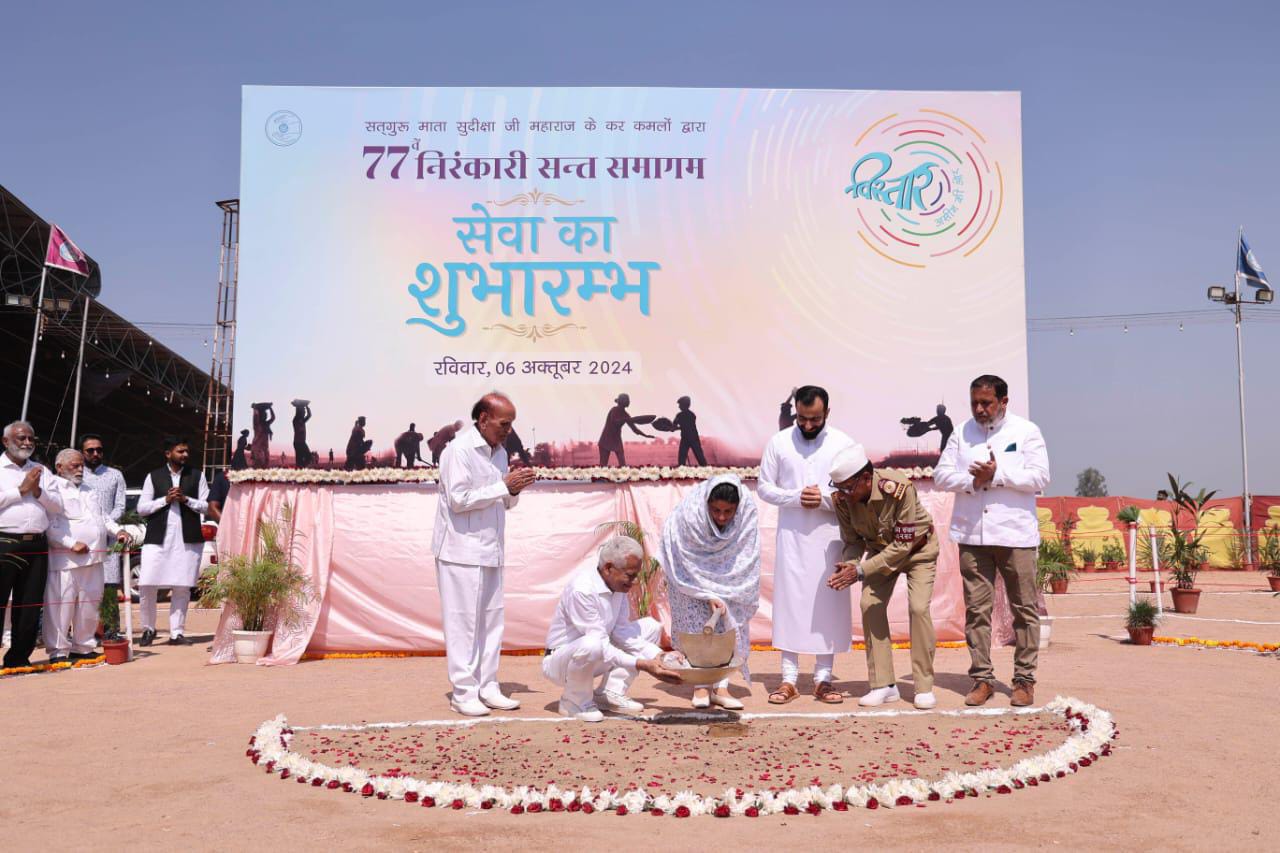 इस संत समागम की भूमि को समागम के लिए तैयार करने की सेवा का शुभारम्भ इस बार 6 अक्टूबर को हर वर्ष की भांति सतगुरु माता सुदीक्षा जी महाराज और निरंकारी राजपिता जी के कर कमलों द्वारा किया गया। इस अवसर पर मिशन की कार्यकारिणी के सभी सदस्य केंद्रीय सेवादल के अधिकारी और वाराणसी जोन के जोनल इंचार्ज एवं क्षेत्रीय संचालक के साथ सैकड़ो सेवादार तथा सत्संग के अन्य हज़ारों अनुयायी मौजूद रहे। उल्लेखनीय है कि 600 एकड़ में फैले इस विशाल समागम स्थल पर लाखों संतों के रहने खाने पीने स्वास्थ्य और आने-जाने के साथ साथ अन्य कई प्रकार की व्यवस्थाएं की जाती है जिसके लिए पूरा महीना अनेक स्थानों से आकर भक्त निष्काम भाव से सेवारत्त रहते हैं। इस पावन संत समागम में हर वर्ग के संत एवं सेवादार महात्मा अपने प्रियजनों संग सम्मिलित होकर एकत्व के इस दिव्य रूप का आनंद प्राप्त करेंगे। इस वर्ष के समागम का विषय है विस्तार असीम की ओर।